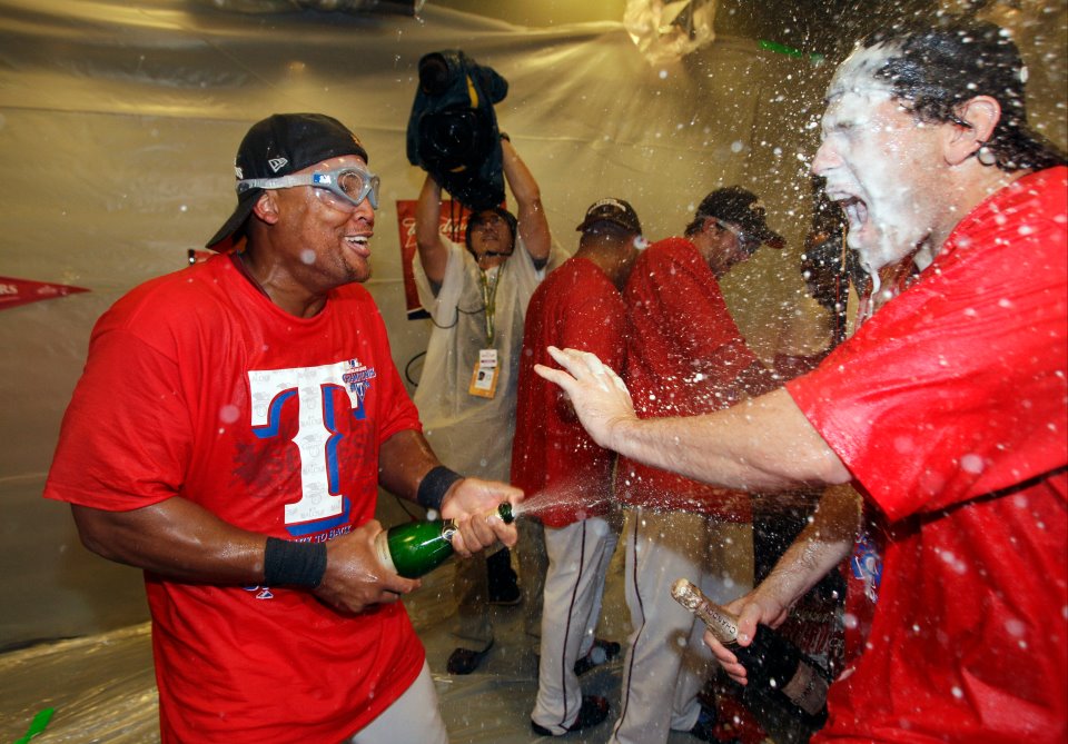 The celebration started in the bottom of the 3rd & lasted late into the night. Congratulations to my Texas Ranger's for heading to the World Series for the 2nd year in a row. Priceless picture.